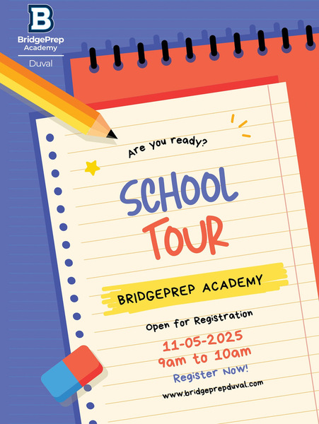 Join us for School Tours on Wednesday, November 5th from 9:00 AM to 10:00 AM! Come see what makes BridgePrep Academy a great place to learn and grow!